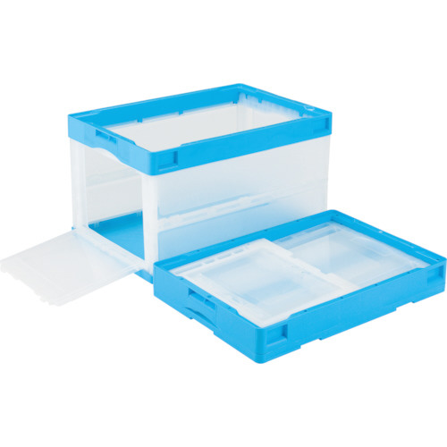 CB型折りたたみコンテナー 50L 片扉 ブルー/透明 CB51NR-T-B/C