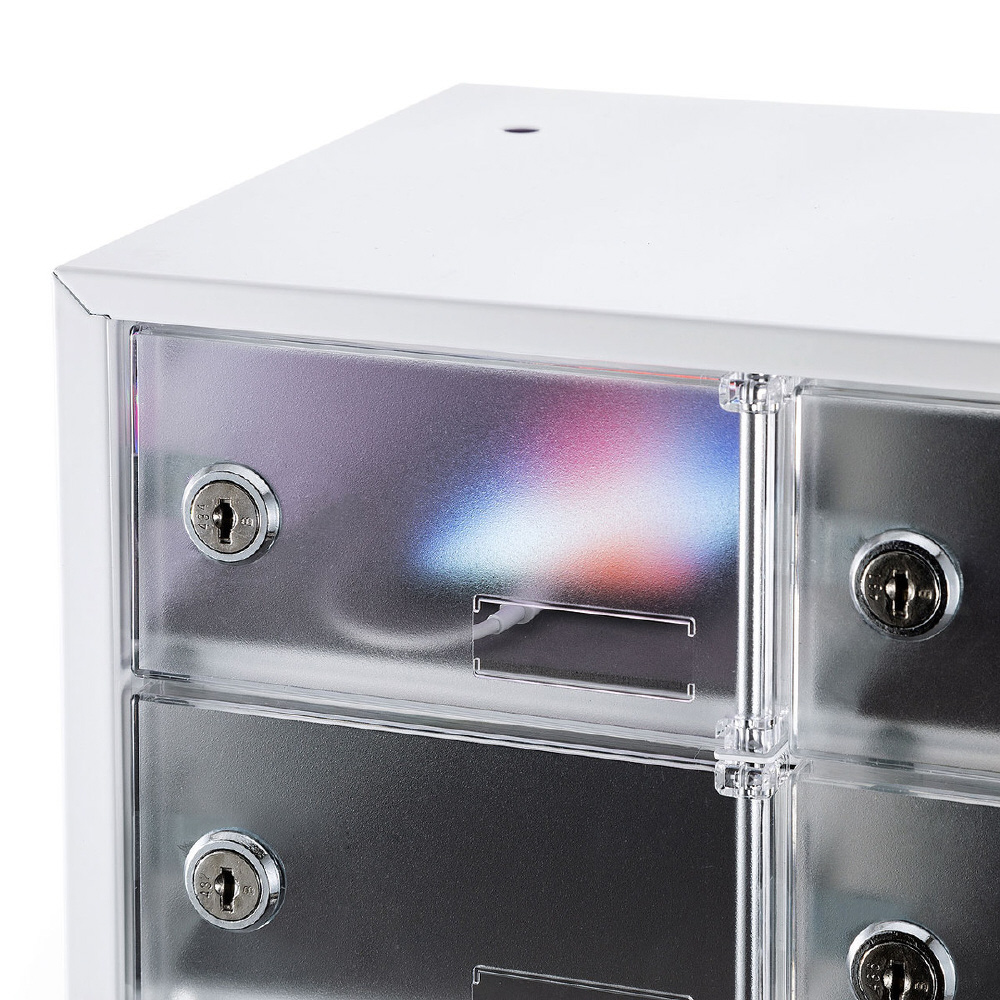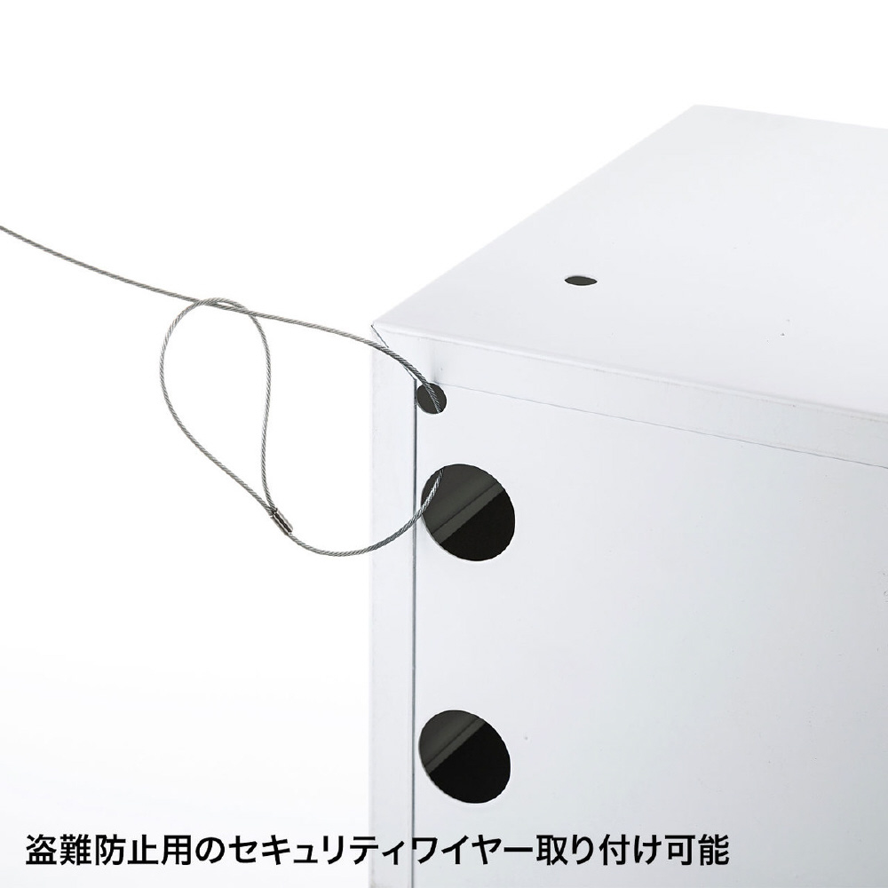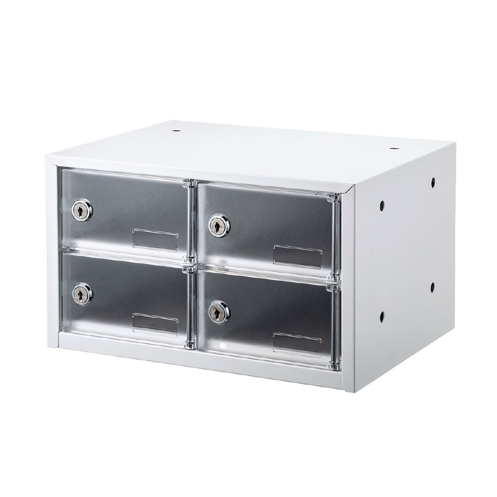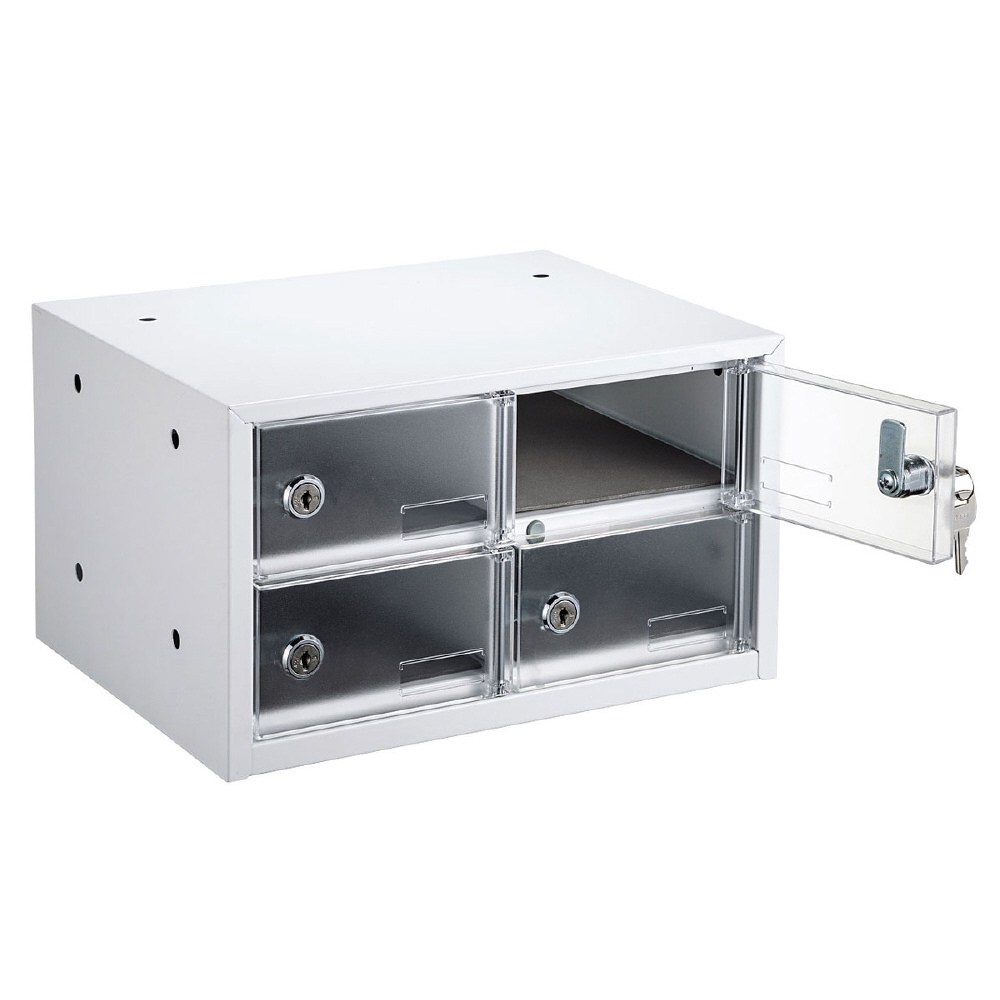 ●スマートフォン収納できる保管庫です。(有効内寸: W130×D220×H60mm/一箇所当たり)〈br〉●正面扉は鍵付です。〈br〉●内部が確認できる半透明の扉を採用しています。〈br〉●上下左右でドッキングさせることができるので、収納台数を増やすことができます。〈br〉●背面にはケーブルを通す穴(直径30mm)があります。〈br〉●盗難防止用のセキュリティワイヤーを通す穴が開いています。