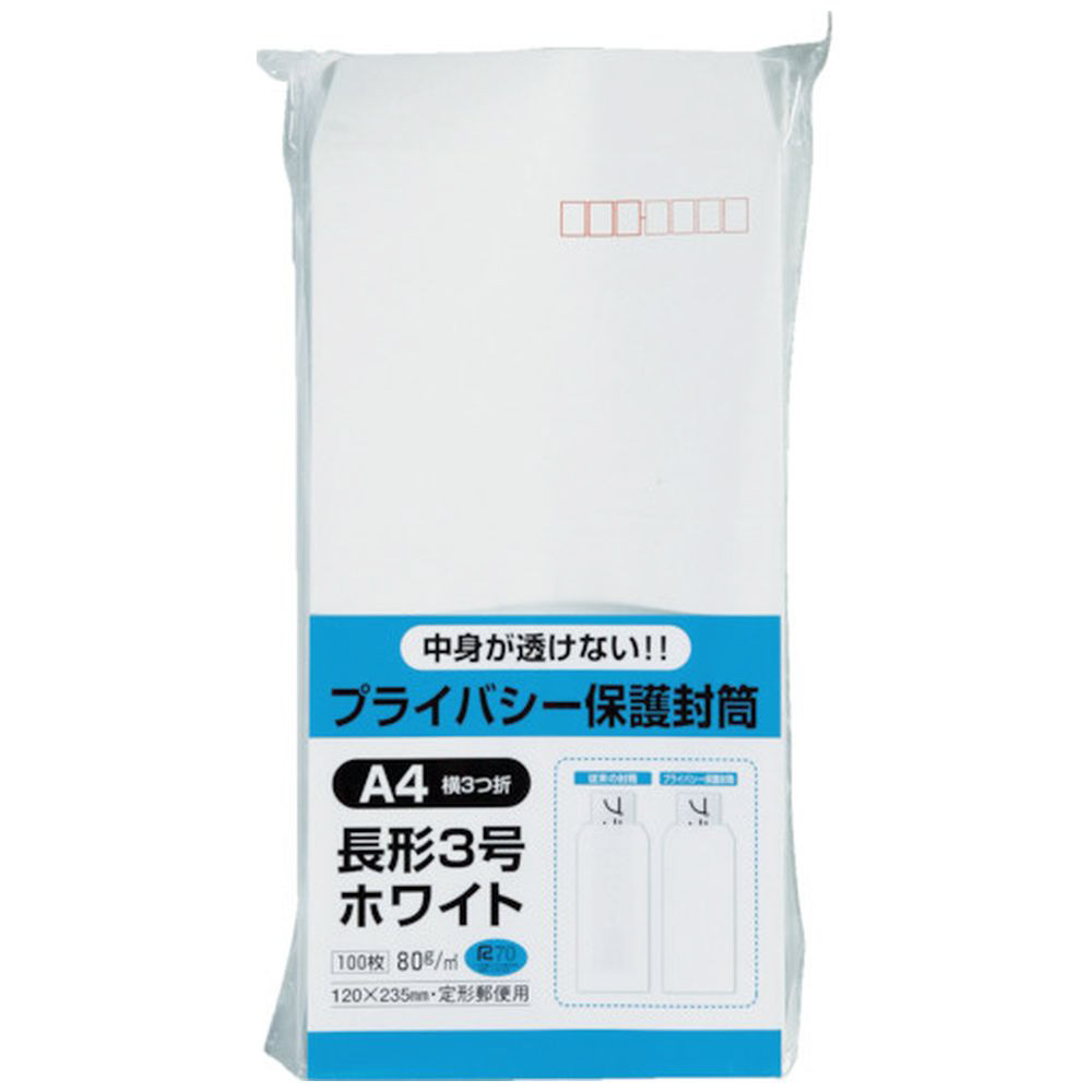 キングコーポ プライバシー保護封筒100 長3 ソフト ホワイト N3PB80
