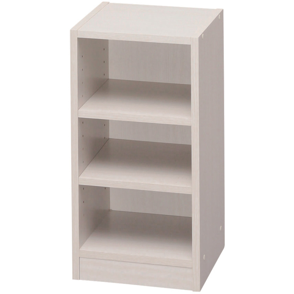 ■棚板は高さが自由に変えられる可動棚タイプ(可動ピッチ約32mm)で、カムロックを採用しているので棚板がズレにくいです。