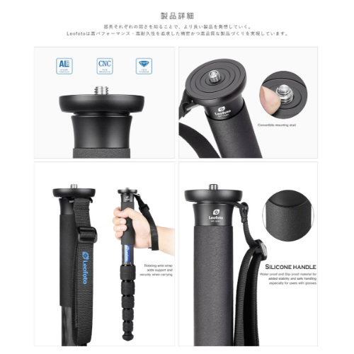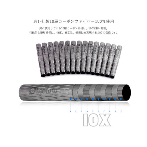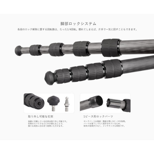 小型軽量な4段一脚。8層カーボンファイバーチューブ。