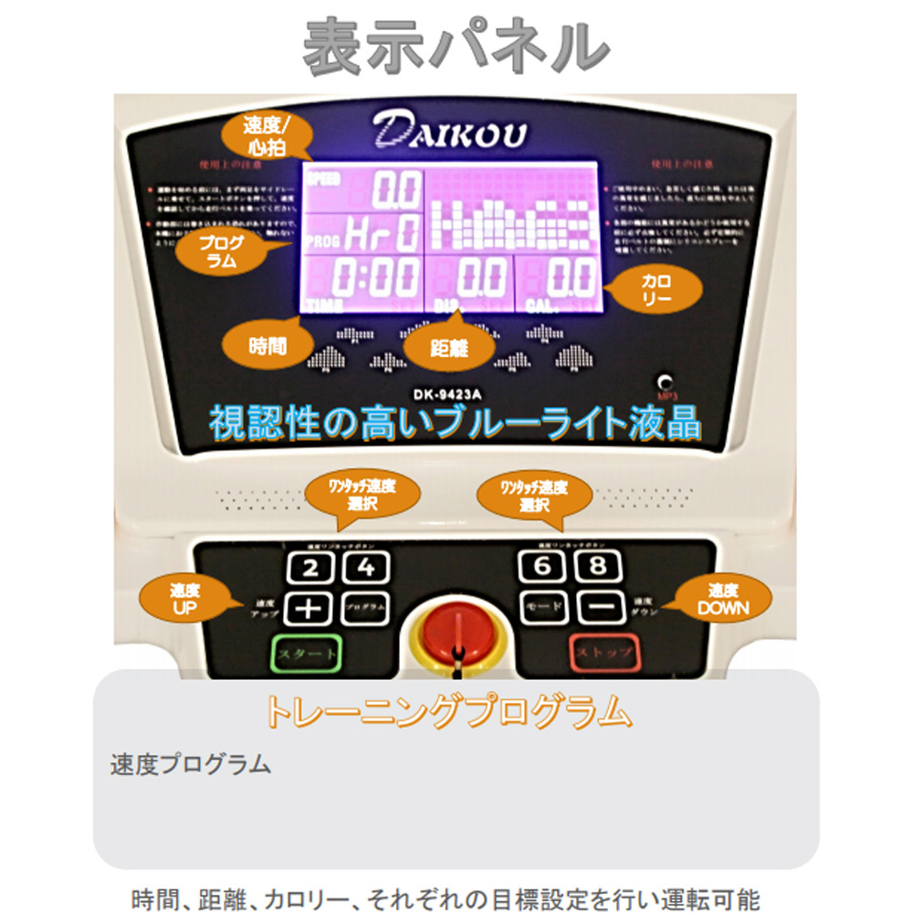 ●速度自動変更プログラム:9パターン + 体脂肪