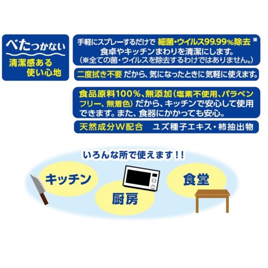 ●食品原料100%、無添加(塩素不使用、パラベンフリー、無着色)なので、キッチンで安心して使用できます。また、食器にかかっても安心。