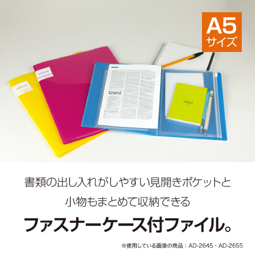 ■ポップなカラーのファスナーケース付ポケットファイル