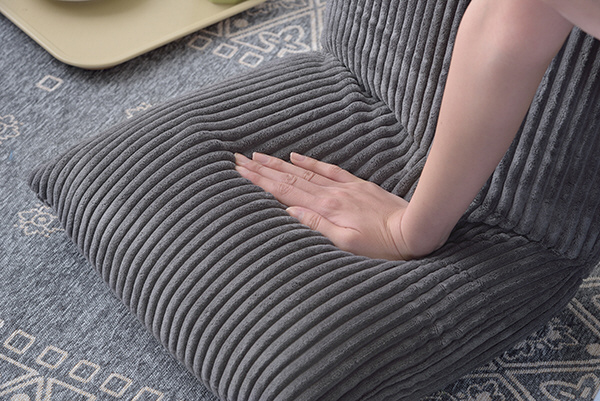 昨年から人気急上昇の【コーデュロイ】。その注目の素材を使用した『リクライナー』が登場しました。高級感のある落ち着いた雰囲気の生地にピッタリの3色をご用意。定番のベージュに、今年は特に人気の高いグレーとネイビーのラインナップ。小ぶりなサイズ感なので、ちょっと休憩にベストなサイズ。センターテーブルやコタツ等とも相性抜群。ロータイプデスクにも合わせやすいです。背面にも『コーデュロイ』生地を使用しているので、お部屋のどこに置いても“様”になる、死角なしのデザインです。小さいけれど、座面の弾力はしっかりとした仕様。「使いやすいから、長く座っていたい」というご要望にお応えした、妥協のないリクライナーです。背もたれを座面側に倒すことができるリクライナーなので、折りたたむととってもコンパクトなサイズに。移動や持ち運び、使わない時の収納に、スペースを取らずとっても便利です。