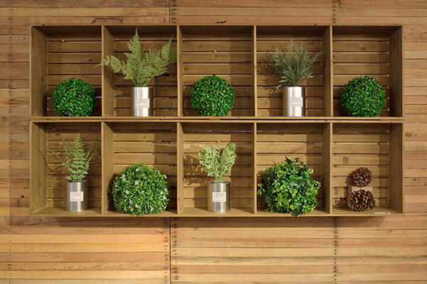 思わず目を引く、ボール型のフェイクグリーン。紐を通して吊るしてみたり、テーブルやラックにちょこんと置いて飾ってみたり。お皿やトレーと一緒にディスプレイするのもいいですね。今までとはちょっと違ったコーディネートが楽しめます。