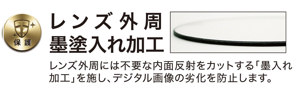 レンズ外周には不要な内面反射をカットする「墨入れ加工」を施し、デジタル画像の劣化を防止します。