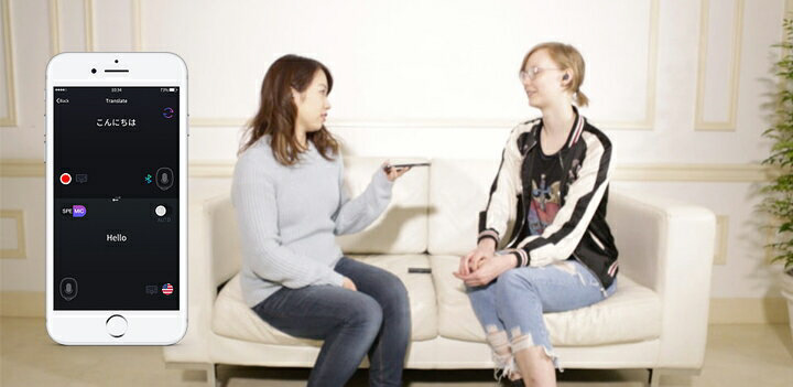 専用のアプリを起動し、左右のイヤホンを異なる言語を話す二人で分け合えば、翻訳された音声を聞きながら会話することが可能です。