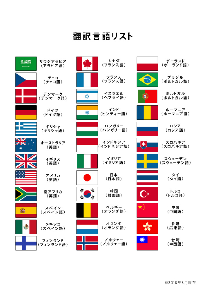 対応言語は全部で36カ国の言語に対応。