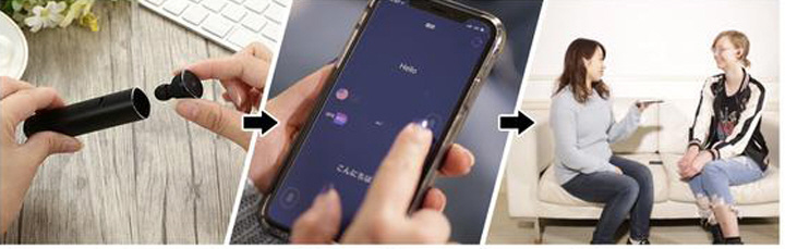 例えば、日本人のあなたが英語を話す海外のお客様と会話する時、あなたはいつもの日本語を話すだけで相手には英語で伝わり、相手の話す英語は日本語に翻訳されて聞こえてきます。