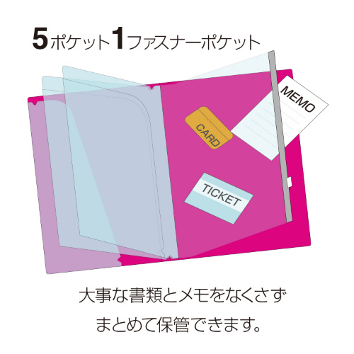 書類以外のメモや資料もしっかり収納。ファスナー付だからなくさずに安心してしまえます。