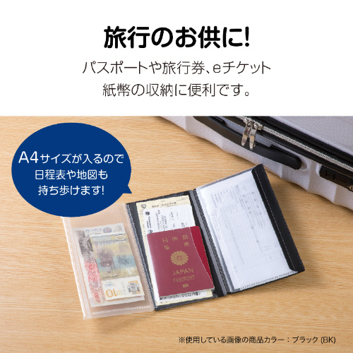 サイドインポケット: 出し入れしやすく落ちにくい。パスポートや通帳の収納になどに便利。