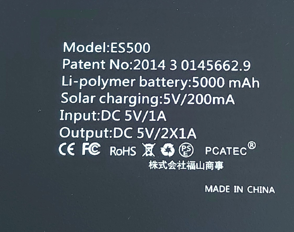 5,000mAhリチウムイオンポリマーバッテリー内蔵のモバイルバッテリーです。