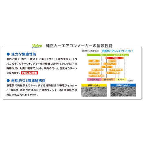 「ほこり・黄砂」「花粉」「ダニ」などを静電気でキャッチ!車内の汚れた空気をクリーンに保ちます。花粉症・アレルギーの方には、不織布+帯電不織布のPIAAのエアコンフィルターコンフォートがお勧めです。PM2.5対策にも有効です。