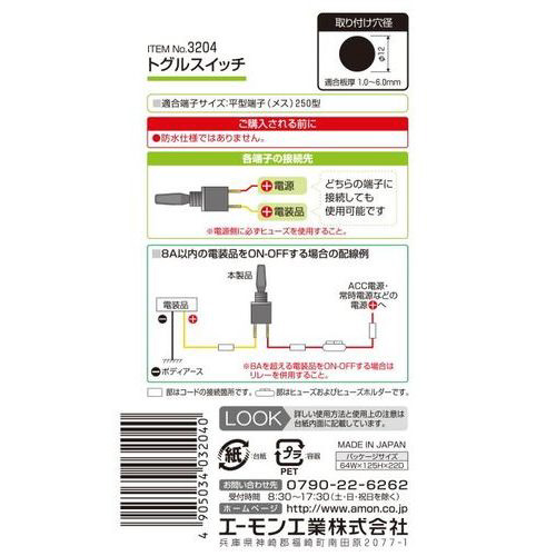 3204 トグルスイッチ ON-OFF DC12V・8A