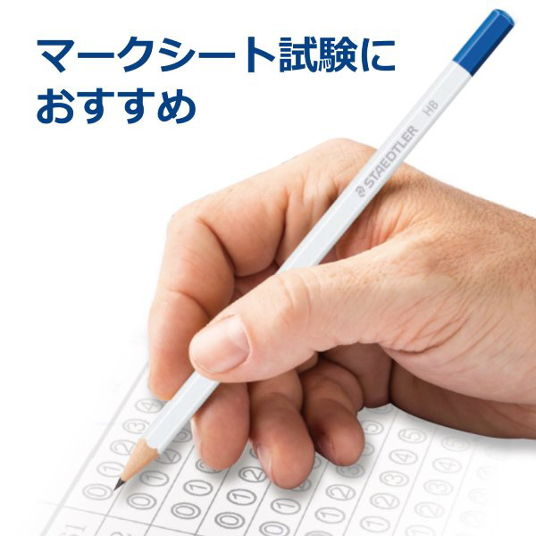 筆記しても芯のヘリが少なく、折れにくく、芯粉が出にくいステッドラーの最高品質鉛筆 マルス ルモグラフと同じ芯を採用しつつ、コストを最小限に抑えました。また、どんな試験会場でも使えるよう、軸にはブランドロゴと硬度(HB)のみをプリントしています。