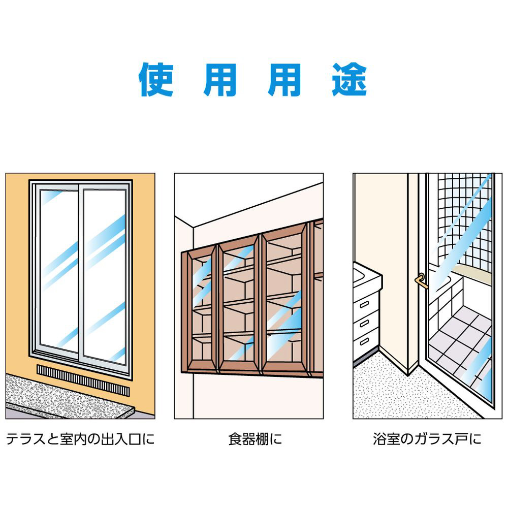 ガラスが割れにくく、割れても飛び散りにくい強力タイプ。