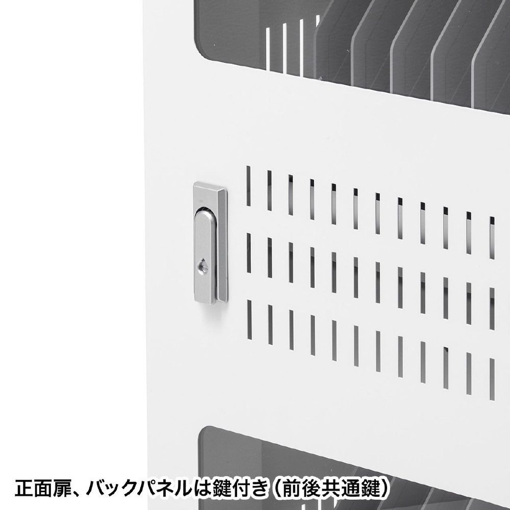 ●正面扉、バックパネルは鍵付きです。(前後共通鍵)