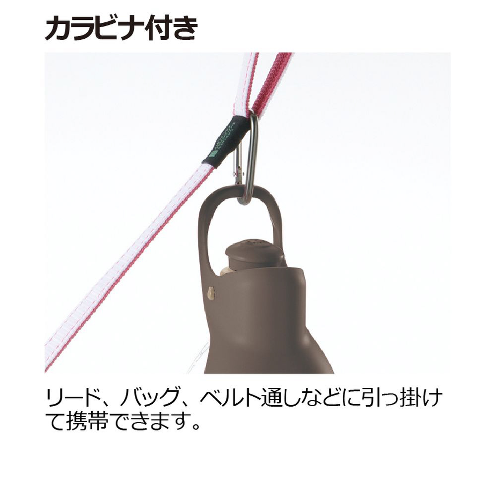 ・カラビナ付きなのでリード、バッグ、ベルト通しなどに引っ掛けて携帯できます。