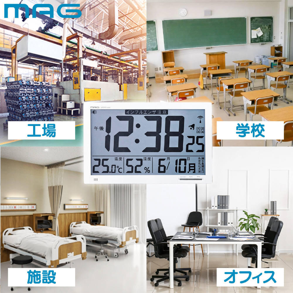 ■環境目安を表示するオフィスにも便利な大型サイズのデジタル電波時計
