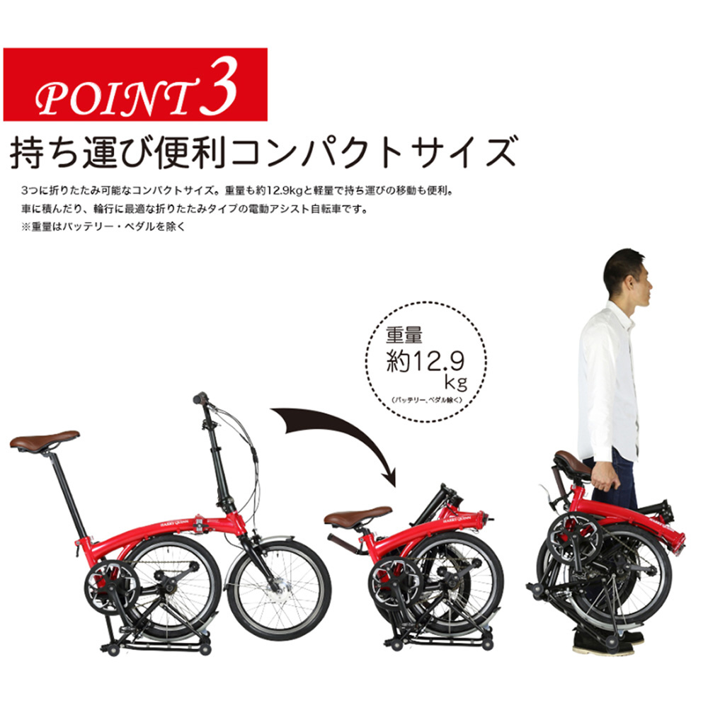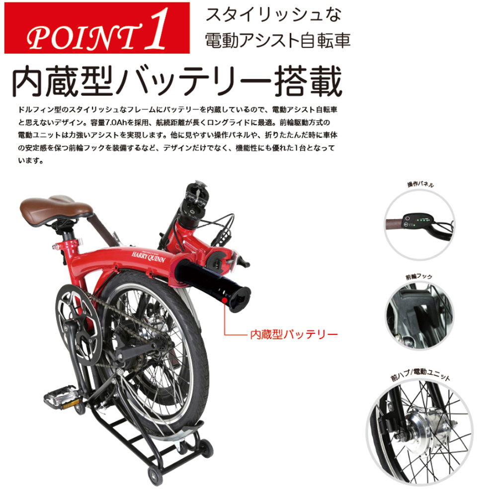 16型 電動アシスト 折りたたみ自転車 Harry Quinn PORTABLE E-BIKE(レッド) AL-FDB160E レッド [16インチ]