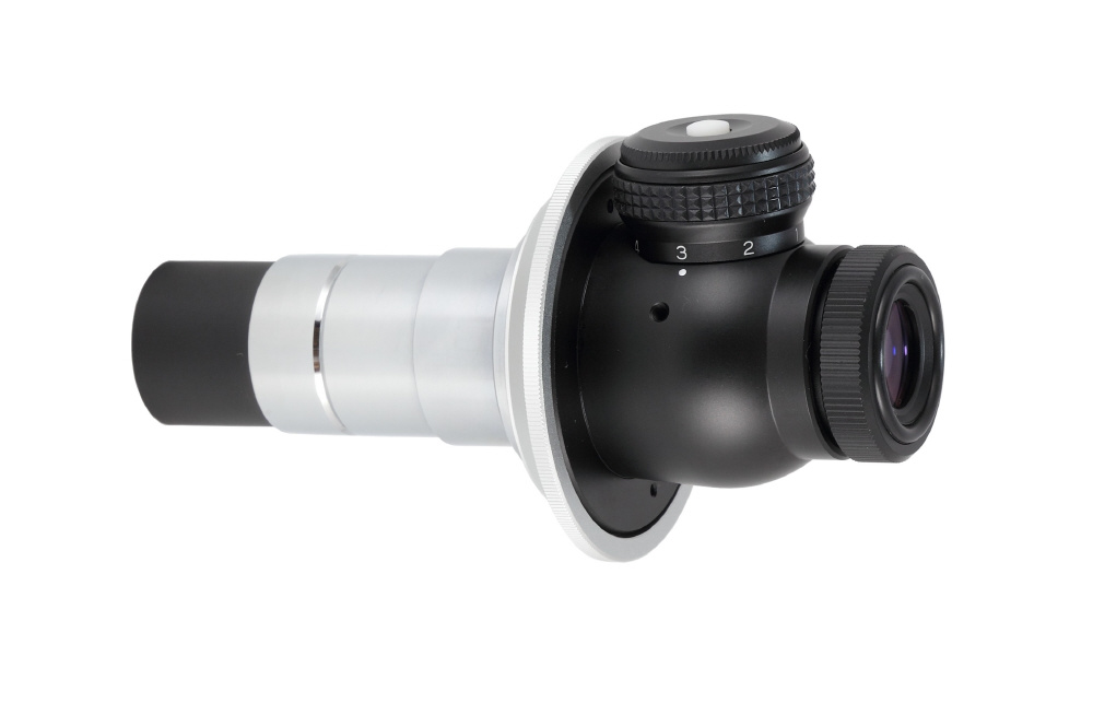 「ポラリエ極軸望遠鏡PF-L」の後継品です。より厳密な極軸合せのために欠かせない、「星空雲台ポラリエ」に装着できる極軸望遠鏡が暗視野照明付で登場です。