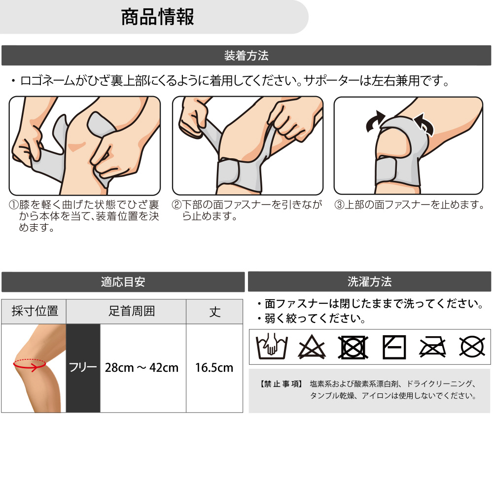 ●オープンタイプで装着が簡単。フィット感・固定力を調整可能。通気性抜群でムレにくく、抗菌加工で衛生的。立体設計カットでひざに自然にフィット。ひざ関節の安定やけが予防に。スポーツ・日常での使用に最適。