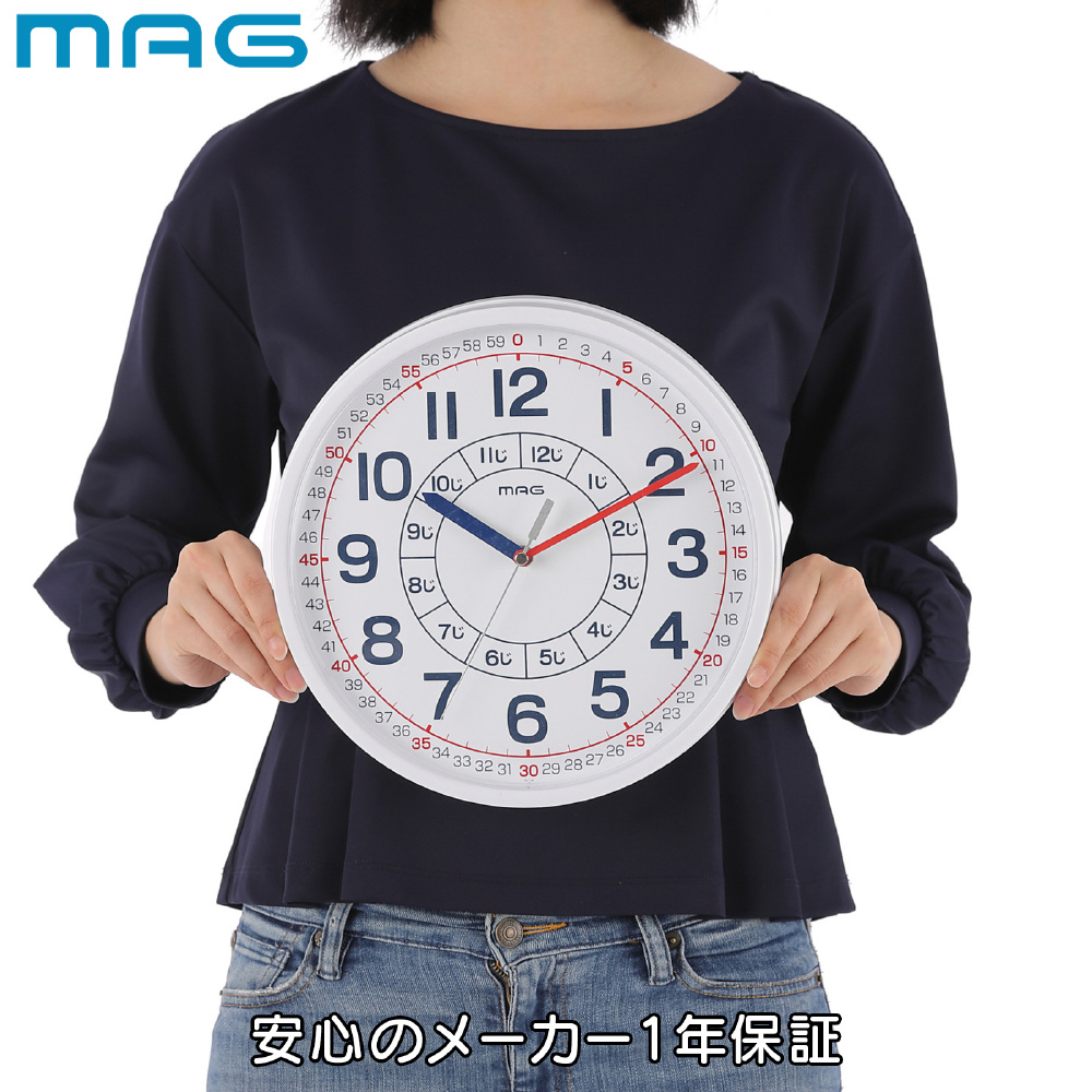 秒針が一秒ずつチクタクと動くステップ秒針で、針の動きが視覚的にわかりやすく、時刻の読み方学習にも最適です。