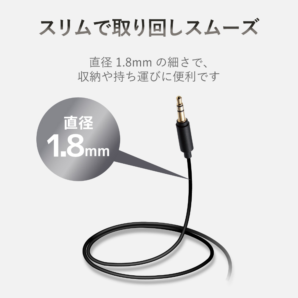 目立たず配線や収納がしやすい、直径1.8mmのスリムケーブルです。