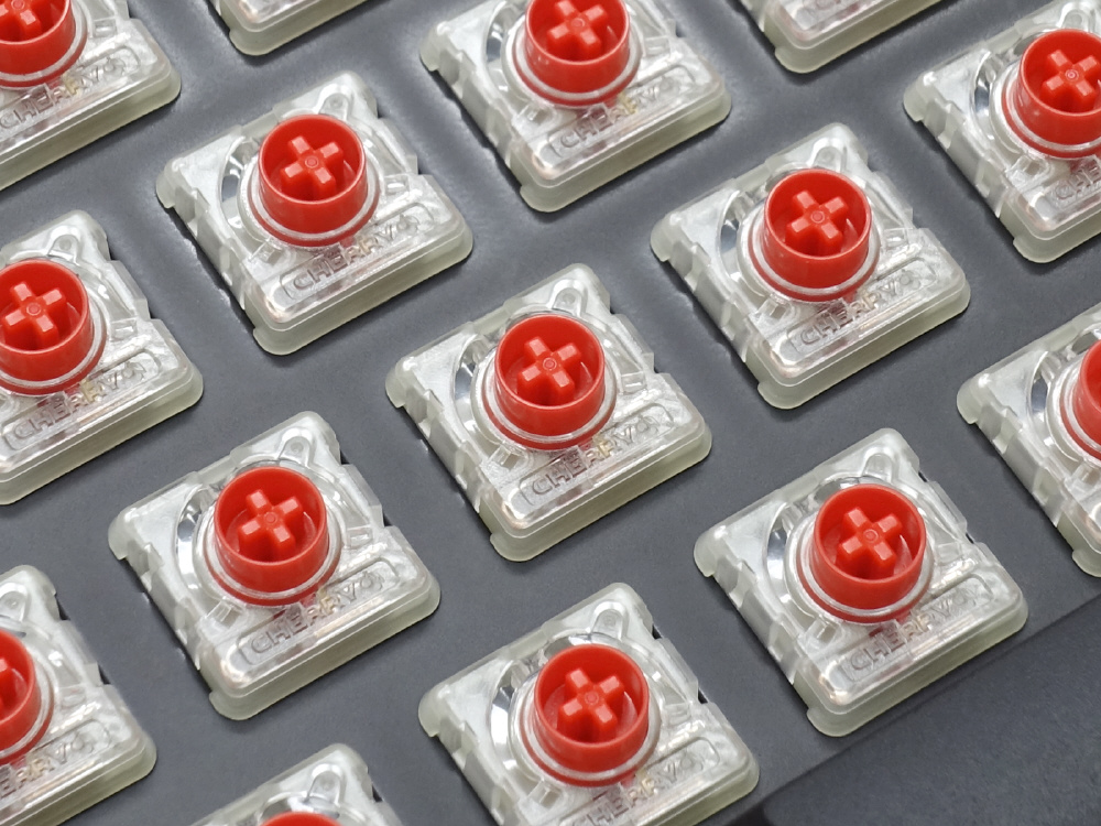 Low Profile 赤軸は、キーストローク3.2mm、アクチュエ―ションポイントが1.2mm、押下げ特性45gのリニアタイプスイッチです。ストロークが浅くアクチュエ―ションポイントが短い傾向を示すスイッチです。