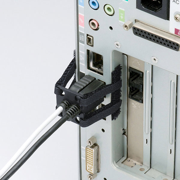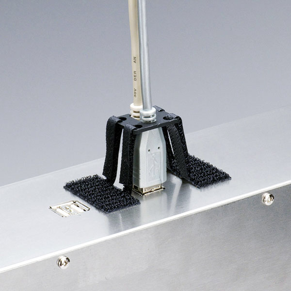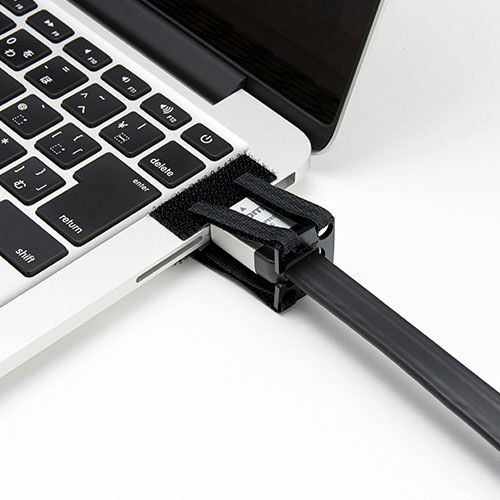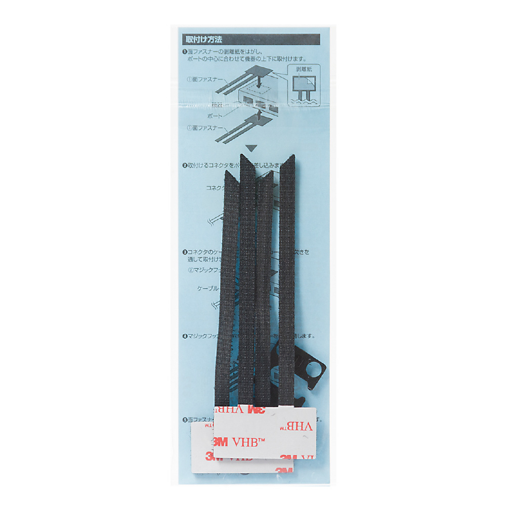 ●USBホールドロックは、プラグを押えるマジックフッカー(樹脂)と機器側へ取付ける、固定するするための粘着付面ファスナーの組合わせで構成されています。