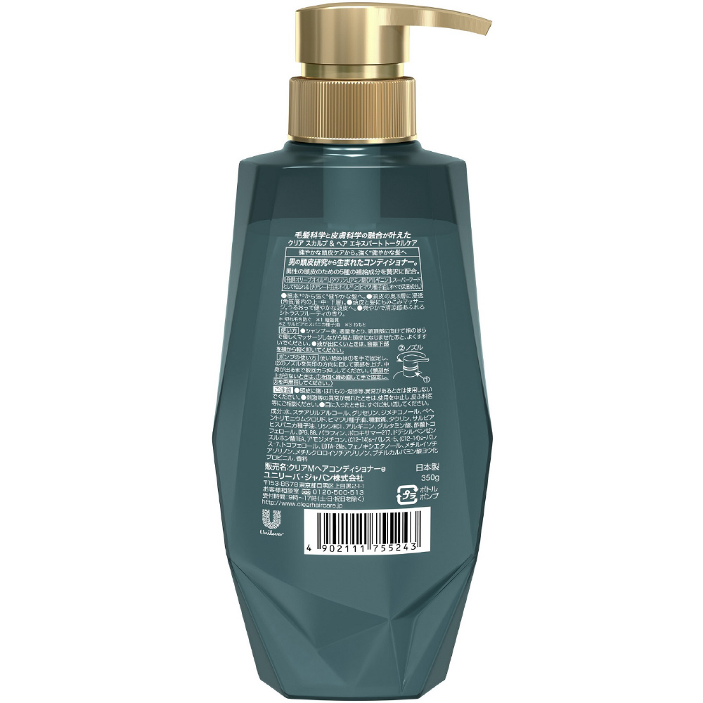 毛髪科学と皮膚科学の融合が叶えた、クリア スカルプ&ヘア エキスパート トータルケア。健やかな頭皮ケアから。強く*健やかな髪へ。男の頭皮研究から生まれたコンディショナー。男性の頭皮のための5種の補給成分を配合。頭皮の奥3層に浸透(角質層内の上・中・下層)。頭皮と髪にもみこみマッサージ。うるおって健やかな頭皮と強く*1健やかな髪へ。*1切れ毛を防ぐ