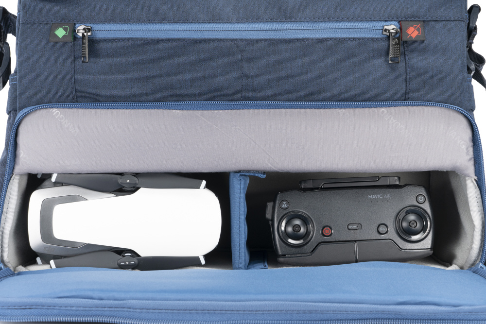 カメラやビデオだけでなく、小型のドローンを収納することもできます。中のディバイダーを取り外せば通常のバッグとしてもお使いいただけます。