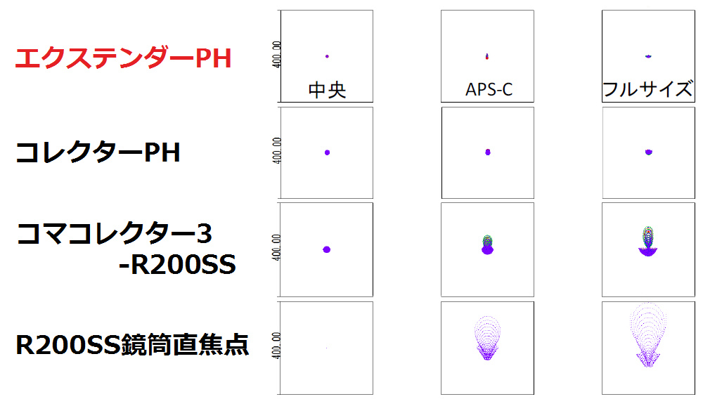 ■「R200SS鏡筒」の焦点距離を1.4倍(800→1,120mm)に延長しつつ、明るいニュートン式光学系で発生するコマ収差も良好に補正しています。