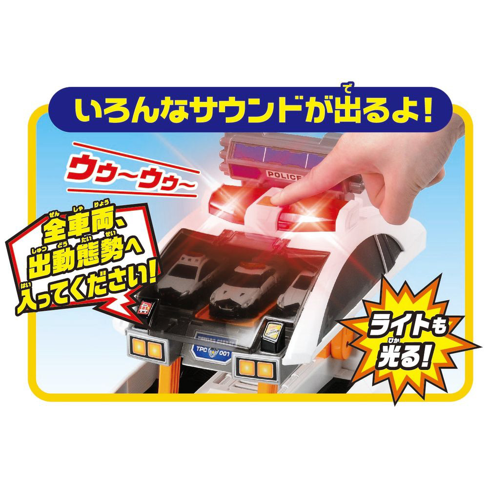 ポリスモード時に出動ボタンを押すと中央指令室に待機していたトミカがサウンドとともに緊急出動します。