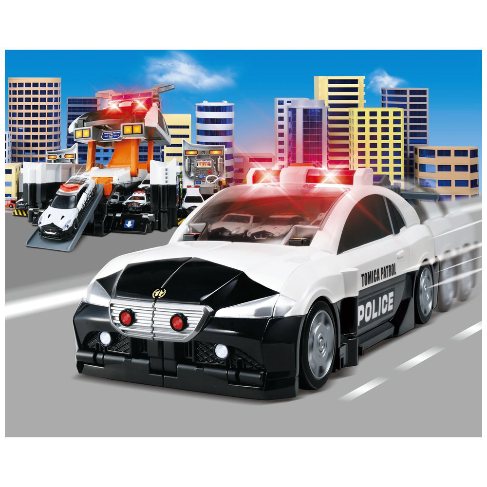 デッカいパトロールカーが警察署に変形!トミカ最大12台積載可能なドデカいパトロールカー!