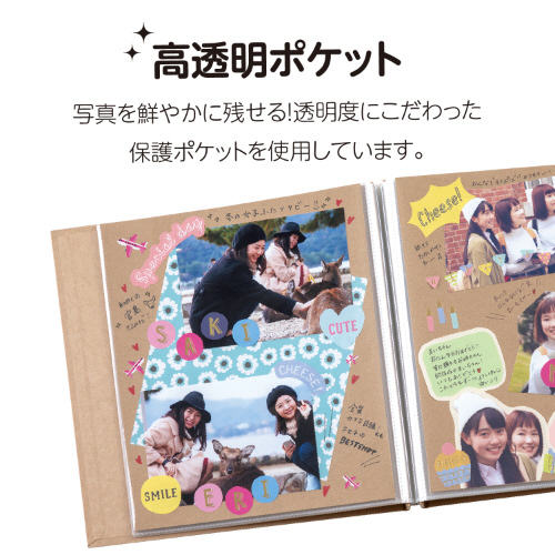 高透明ポケット/写真が映える高透明ポケット。飾った台紙をキレイに保護します。
