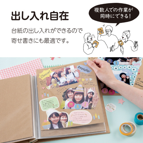 出し入れ自在/台紙の出し入れができるので、寄せ書きにも最適です。