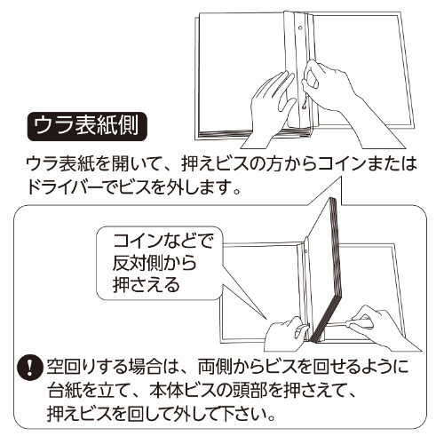 材質:表紙/紙、台紙/紙・OPP、ビス/真鍮(ニッケルメッキ)