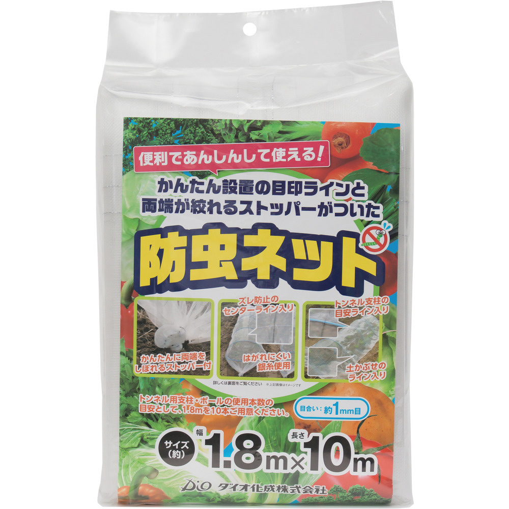■かんたんに両端を絞れる「ストッパー」が付いています。■目印の目安ラインが入っているので初心者でも使いやすいです。【用途】・防虫用に。【仕様】・可視光線透過率:90%・色:透明・幅(m):1.35・長さ(m):10・目合(mm):1【材質】・ポリエチレン(PE)