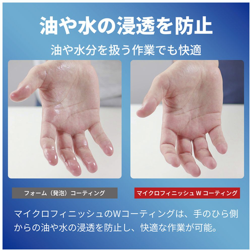 ■手のひら、指にニトリルゴムをダブルコーティングして油の浸透を防止、またフィットするので、細かな作業に適しています。
