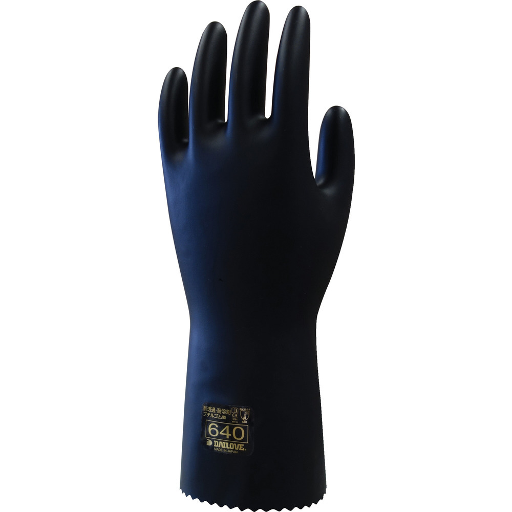 ■極性溶剤に対して耐透過性・耐溶剤性に優れます。アセトン・メタノール・DMF(ジメチルホルムアミド)・ニトロベンゼンに対する破過時間は480分以上です。柔らかく作業性の良い手袋です。一体成形により防水性が高く、浸漬作業でも使用可能です。製造工程でパウダー(粉)を一切使用していません。耐候性、耐透過性がよく極性溶剤に耐えるブチルゴム素材を使用しています。