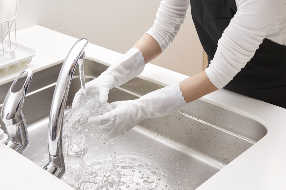 ■塩化ビニール製のため、天然ゴム製の手袋に比べて、洗剤や油に対して耐久性があります。
