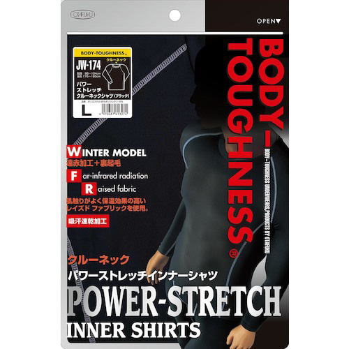 おたふく BTパワーストレッチ クルーネックシャツ ブラック M JW-174-BK-M