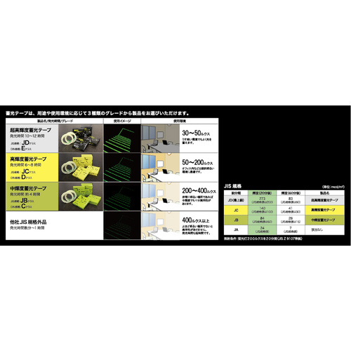 ■低照度環境(50ルクス程度)でも光を蓄え発光します。