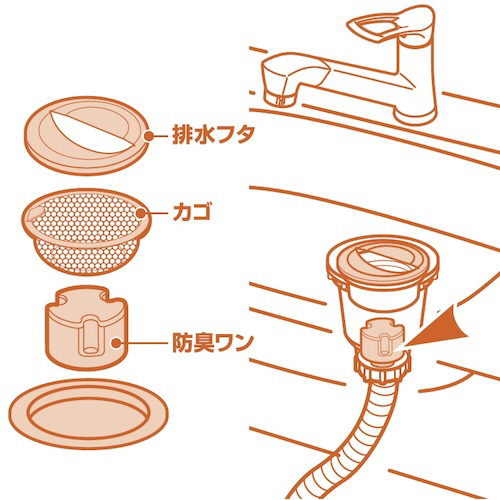 キッチン排水口からの臭気や虫の侵入を防ぎます。