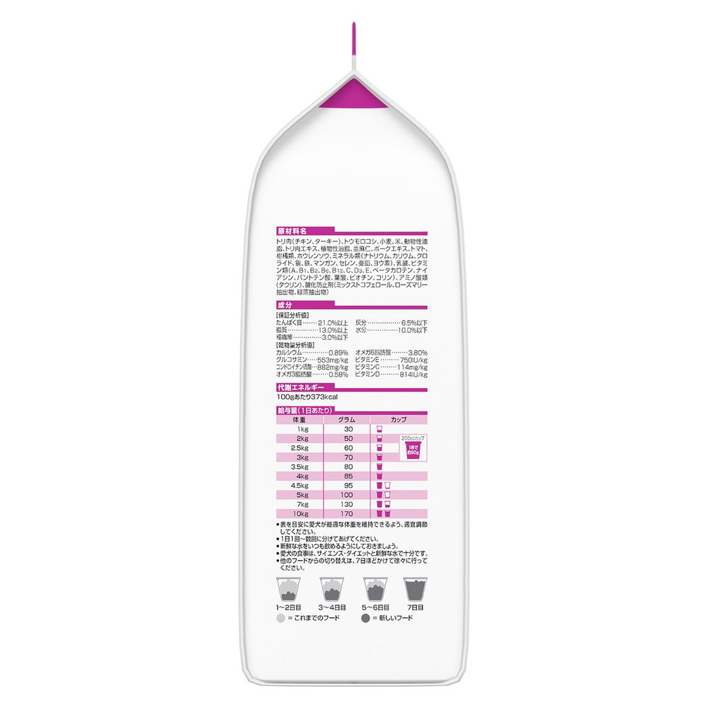 成犬期の元気な体をサポートする栄養バランスのドッグフードです。