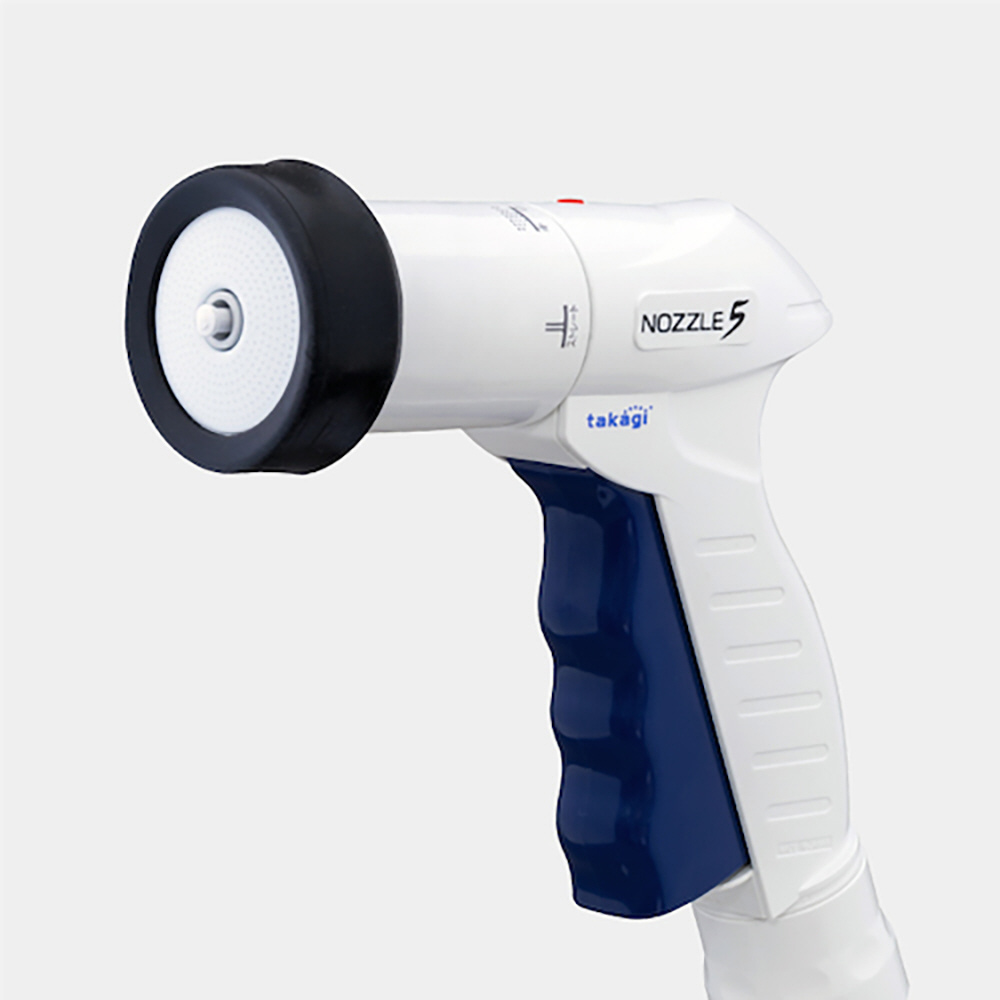スリムヘッドタイプの散水ノズルです。ノズルとコネクターが簡単に着脱できます。