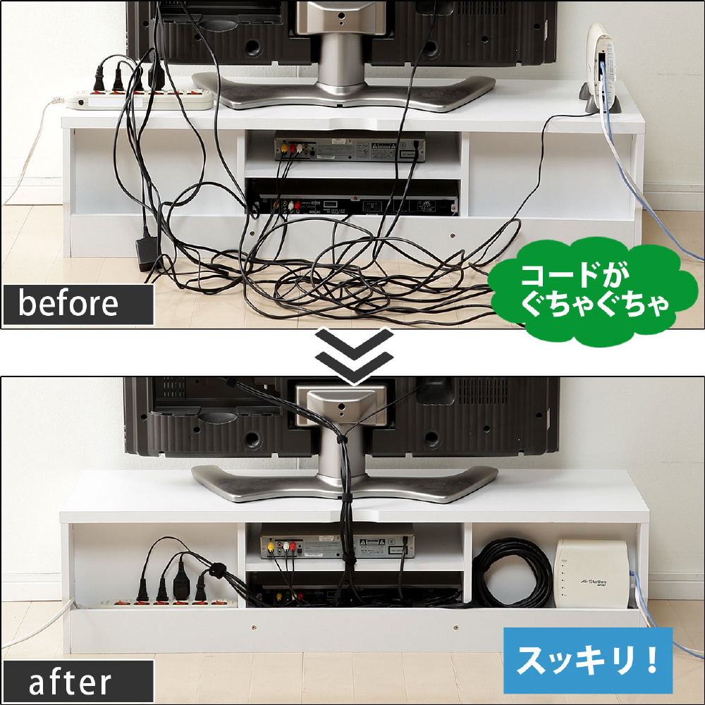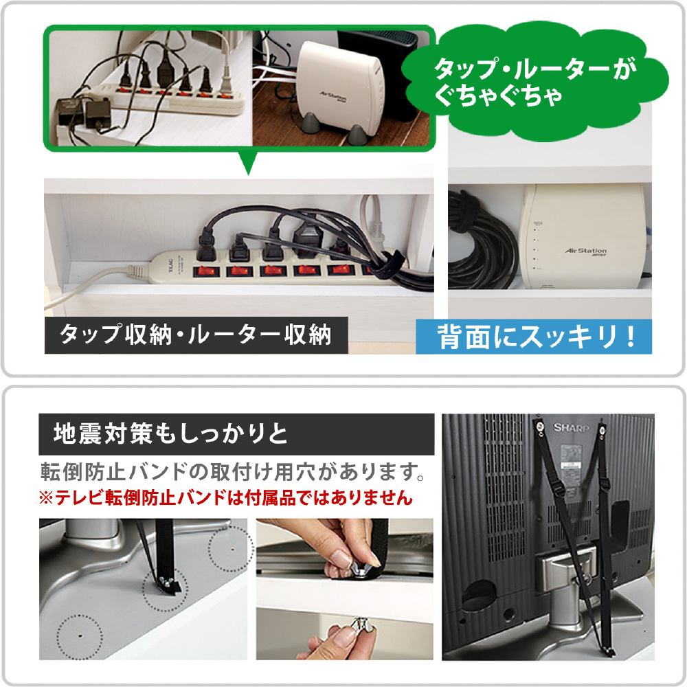 ■背面収納機能付きでTVボード周りの配線がスッキリ
