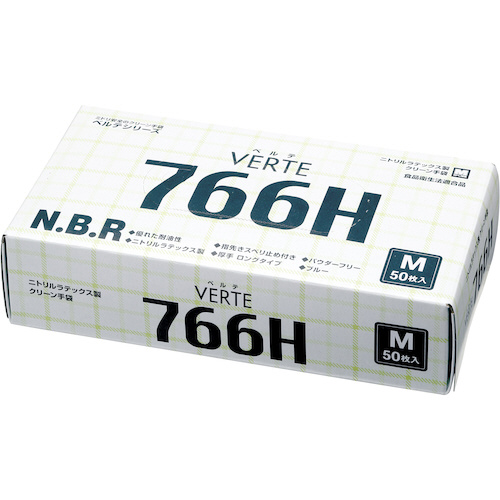 ミドリ安全 ニトリル使い捨て手袋 ロング 厚手 粉なし 青 M (50枚入) VERTE-766H-M